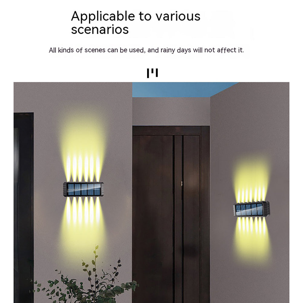 - Up And Down Solar LED Wall Lamp: The solar light has 7 beams of light above and below, designed with upper and lower lighting, creates charming light and shadow.
