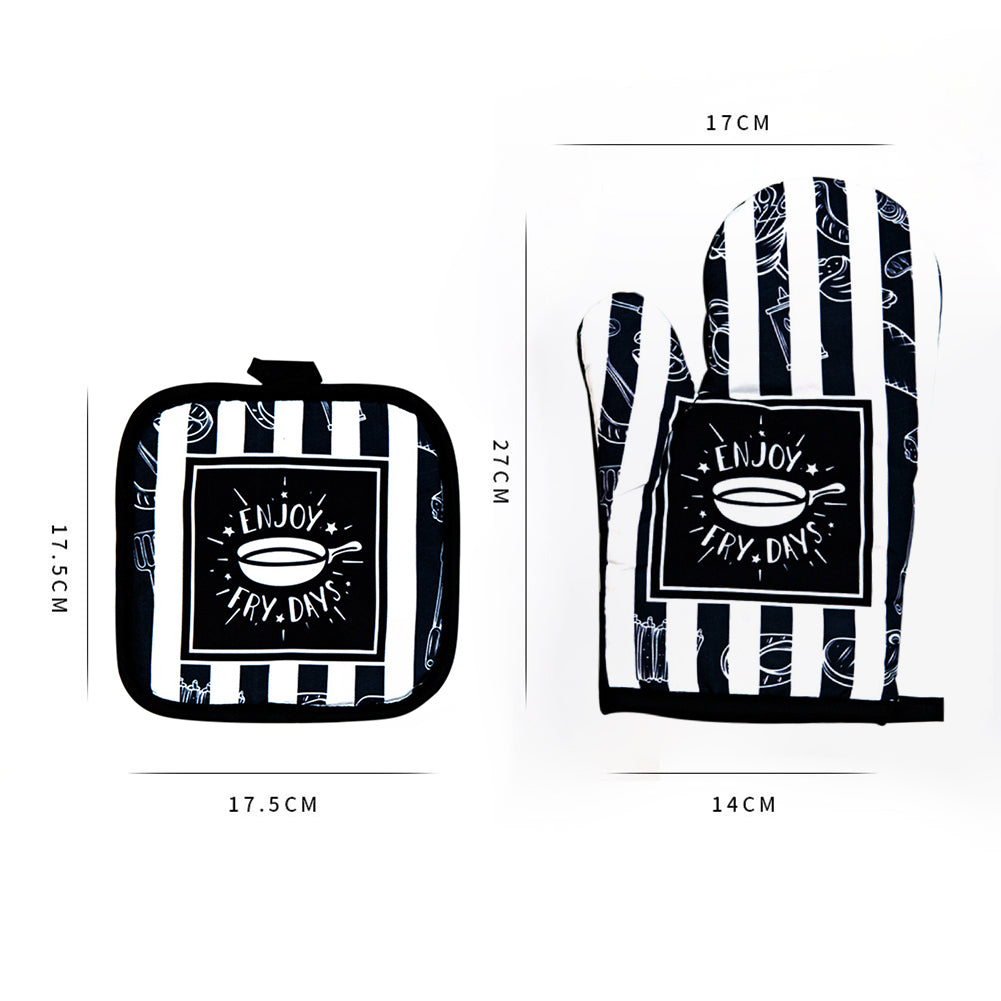 - Size: Baking gloves are 27cm long and 17cm wide. The cushion is 17.5cm long and 17.5cm wide.