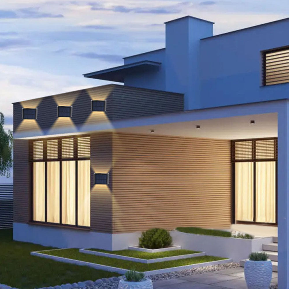 - --Up and down lighting: Outdoor waterproof solar fence lights have 2 cob beams up and down, providing warm lighting up and down, used to decorate outdoor walls, making the space feel higher and more beautiful.