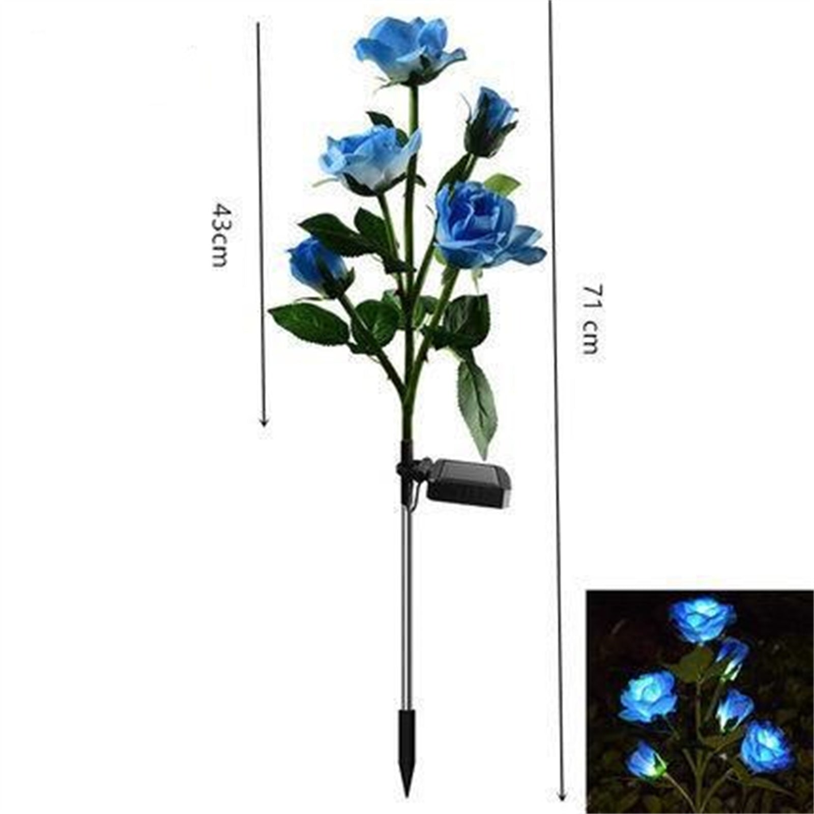 Solar 5 Heads Rose Lamp Outdoor Waterproof Simulation Rose Flower Lawn Decorative Lamp For Garden Yard Patio Decoration blue