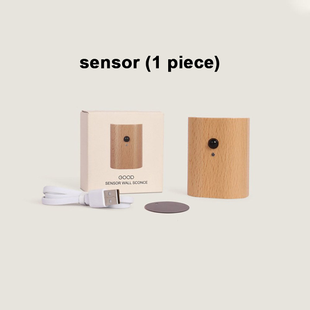 0.4W LED Wall Lamp USB Rechargeable Motion Sensor Magnetic Wood Grain Night Lights Wall Light Fixtures For Bedroom Kitchen Corridor Stairs Lighting Beech wood (sensor 1 piece)