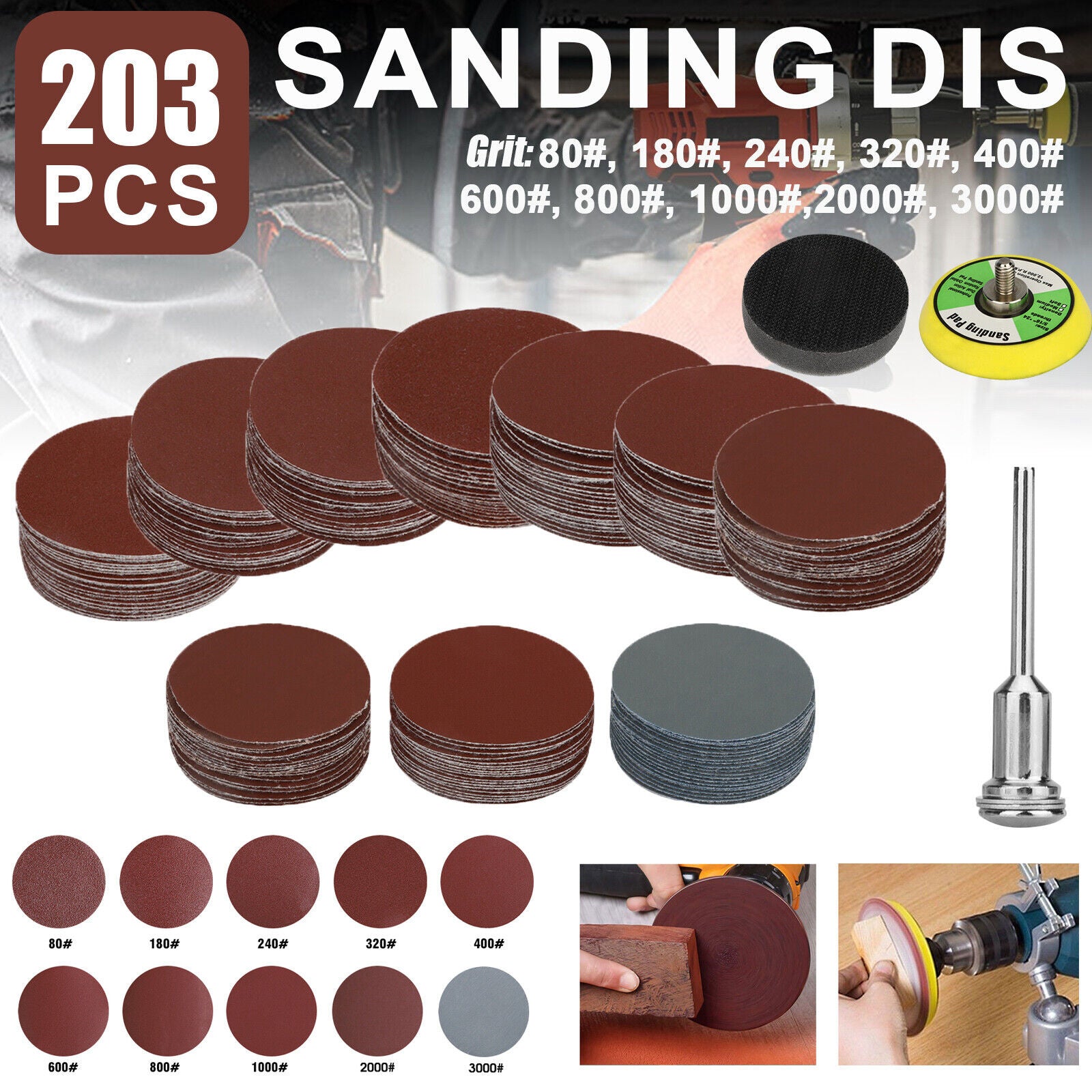 203 Pieces 2 Inch Sanding Disc 80-3000 Sandpaper Hook Loop Sanding Pads For Drill Grinder Rotary Tools 203pcs
