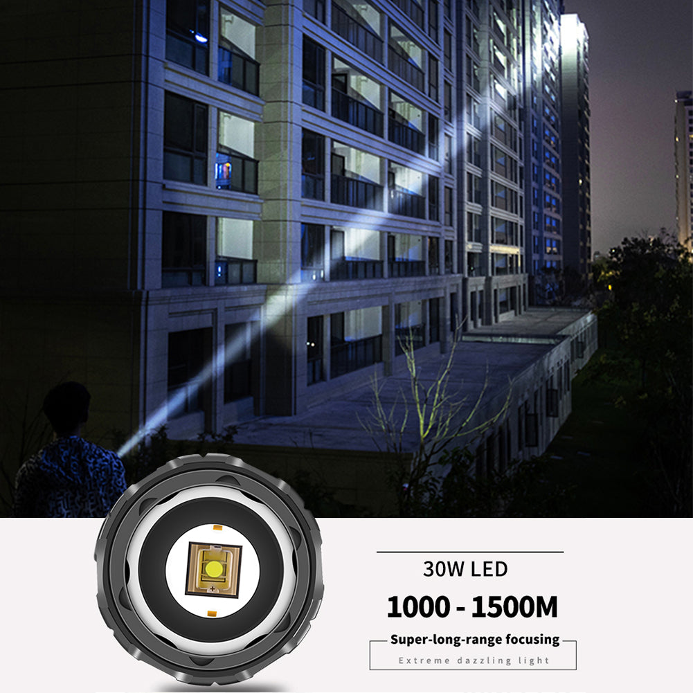 30W LED Mini Flashlight Type-c Charging XHP70 Strong Light Aluminum Alloy Hand Lantern For Emergency Camping Hiking 1472 white flashlight