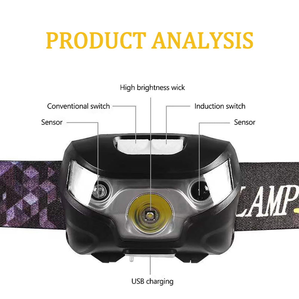 3w LED Headlight With Motion Sensor 3 Modes Super Bright Long-lasting Head Front Light Emergency Light For Exploring Running Fishing red