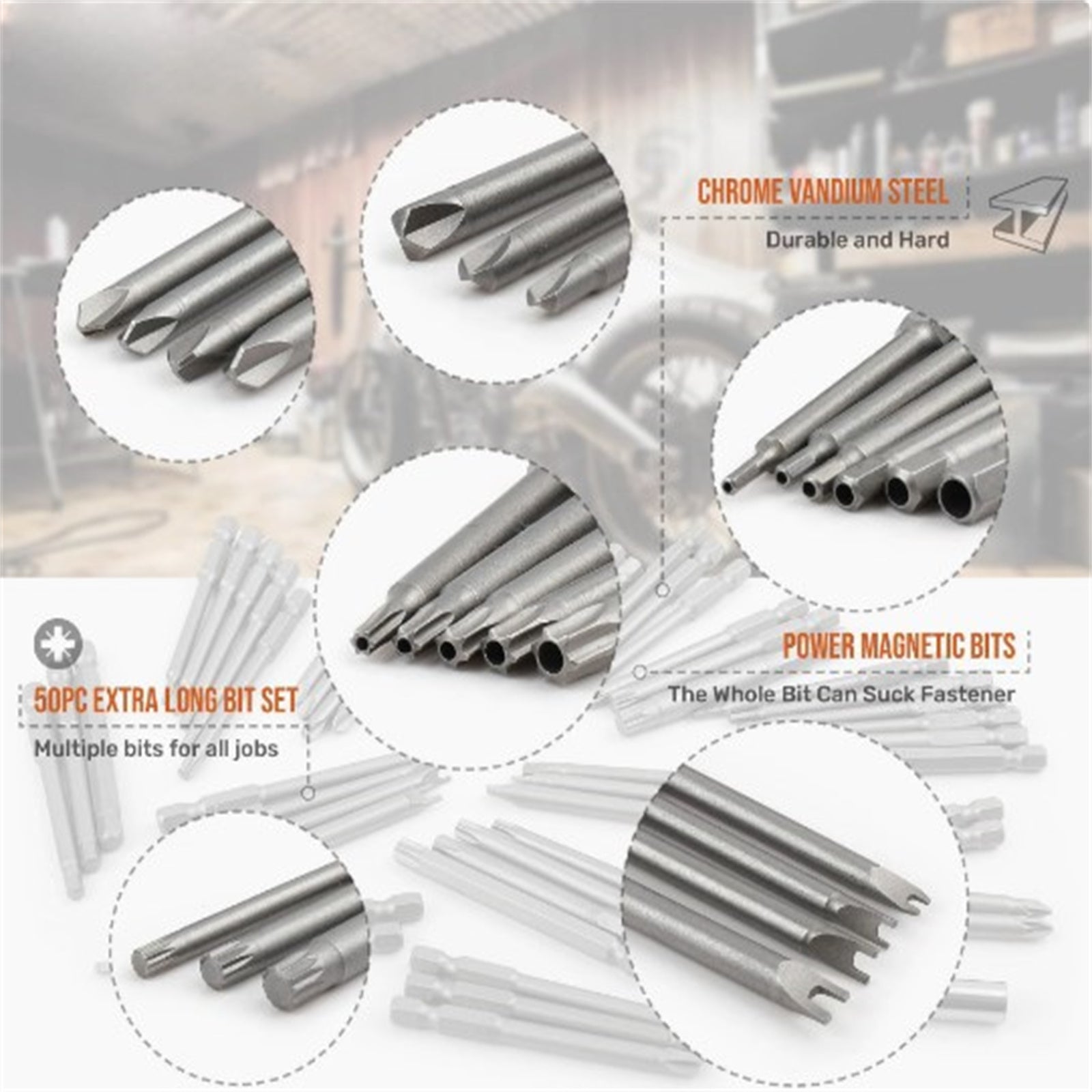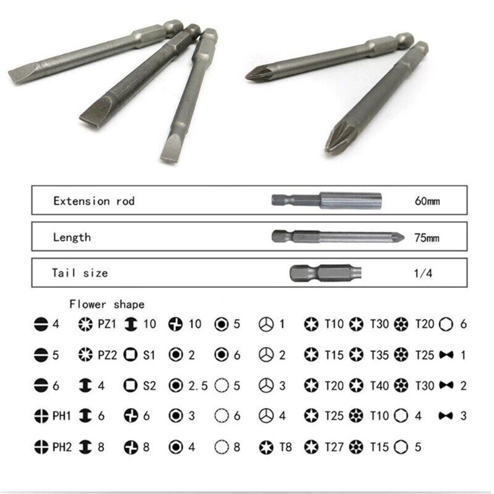50pcs Magnetic Screwdriver Bit Set With Storage Box 75mm Ultra Long High Strength Chromium Vanadium Steel Drill Bits Set (75 x 6.35 x 6.35mm/2.95 x 0.25 x 0.25'') blue