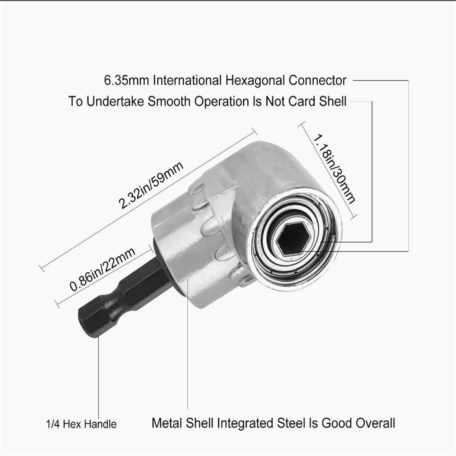 105 ° angle drill bit extender suitable for 6.35 mm (1/4 inch) hexagonal drill bit screwdriver