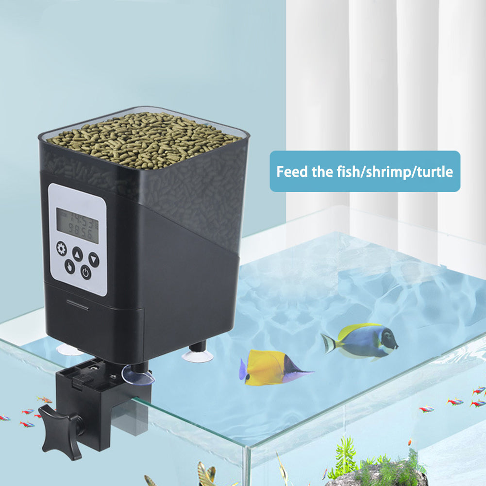 - --Intelligent automatic fish feeder\uff1aThis auto fish feeder allows you to customize the feeding schedule and feeding amount according to your demand. You can set at most four feeding times a day and at most 9 portions each time.