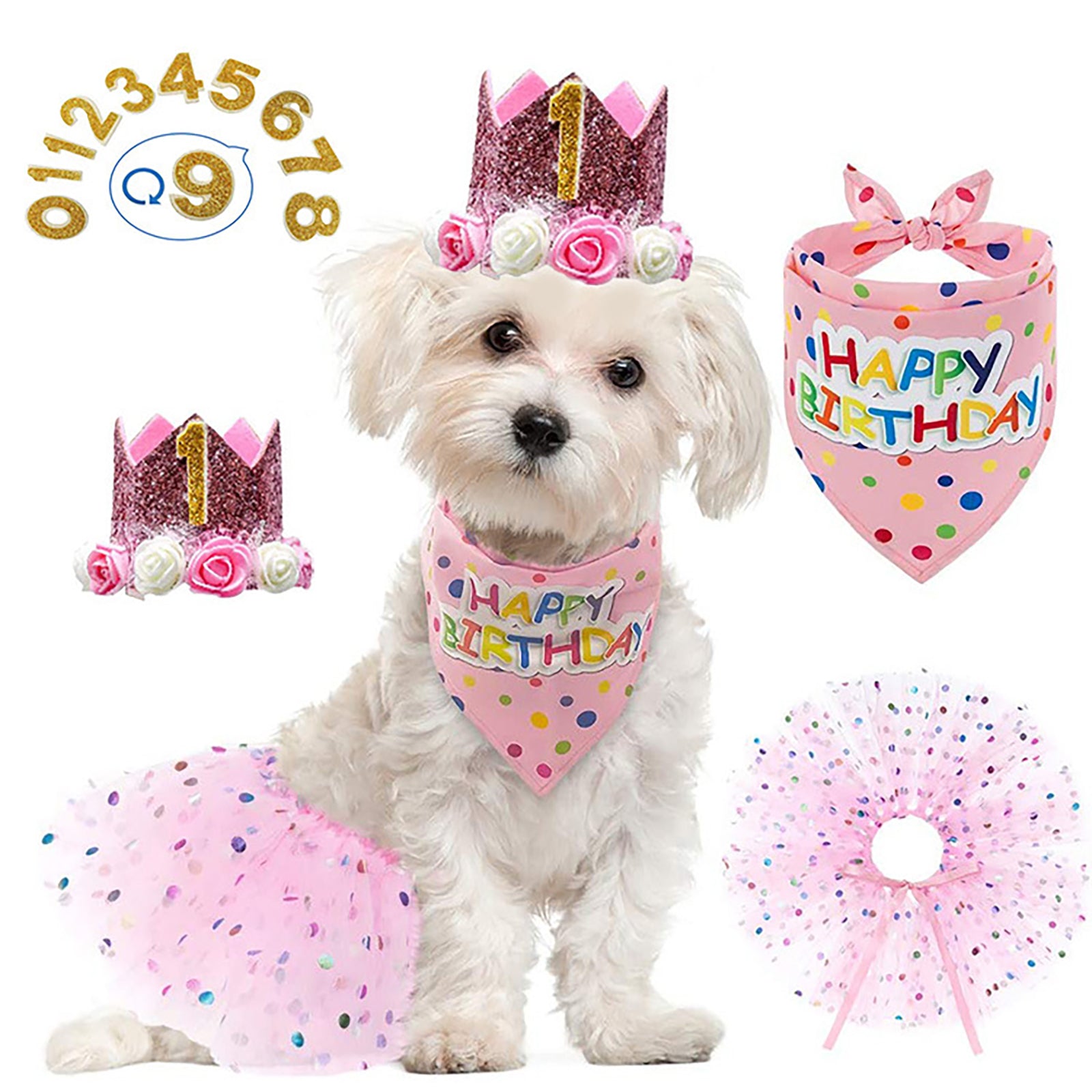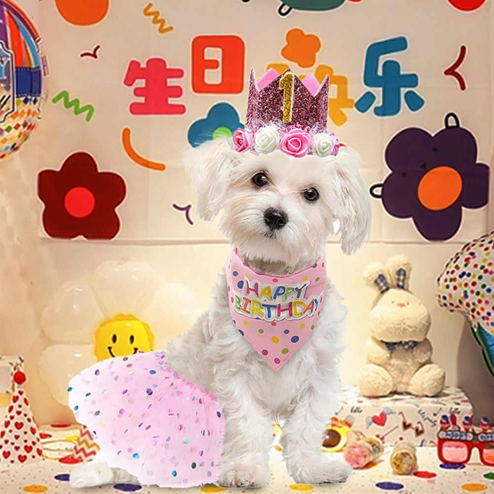 Dog Birthday 1st Party Supplies Scarf Tutu Skirt Crown Hat With 0-8 Numbers Pet Supplies For Puppy Birthday Outfit as shown