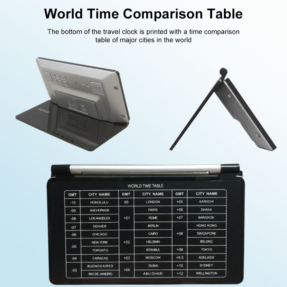 - --Portable: Simple and foldable design, compact and convenient. The travel clock is printed with time comparison tables from major cities around the world, making it suitable for you who frequently travel for business.