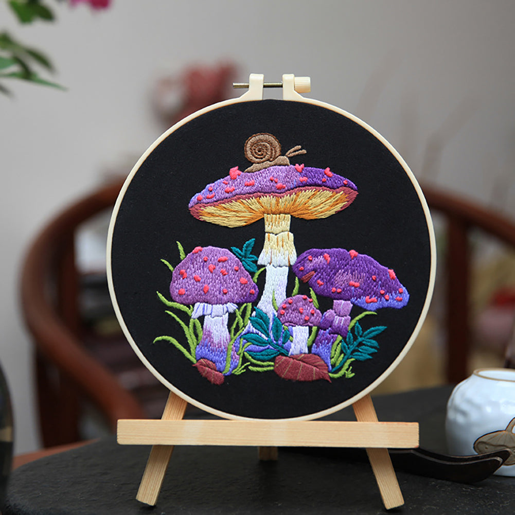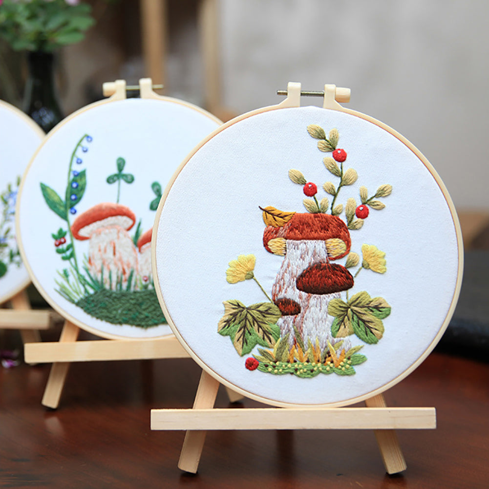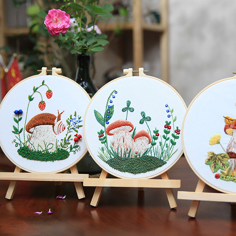 Embroidery Starter Kit With Embroidery Hoops Scissors Needle Threader Colorful Mushrooms Pattern Cross Stitch Starter Kits 4-piece set